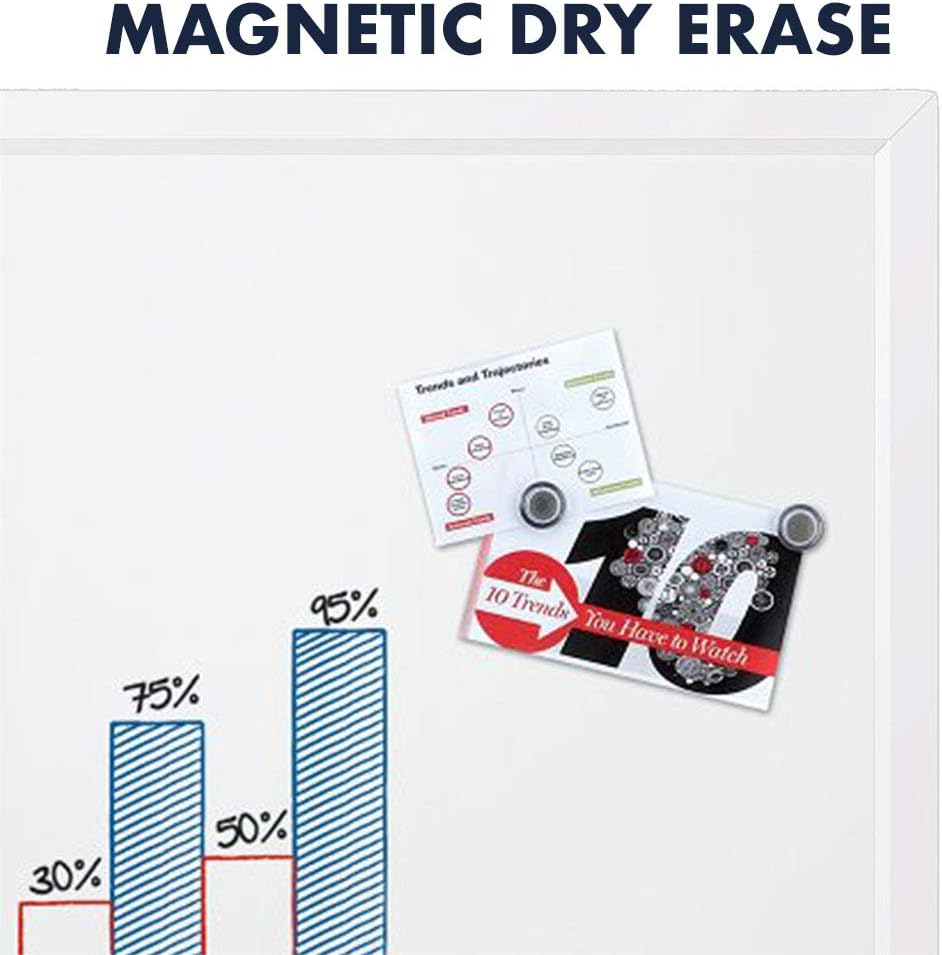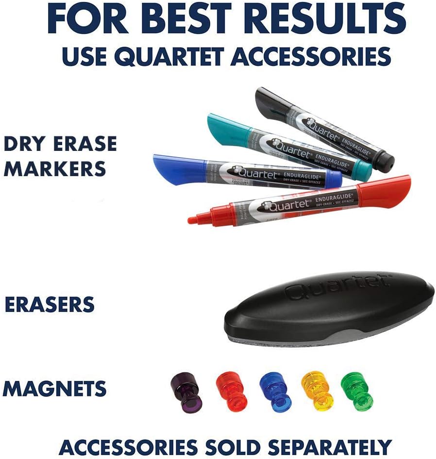 The Quartet White Board is designed with a smooth, magnetic surface that allows you to easily attach important notes, reminders, and documents with magnets. The dry erase surface ensures easy writing and erasing, making it ideal for jotting down ideas, brainstorming, or keeping track of schedules.