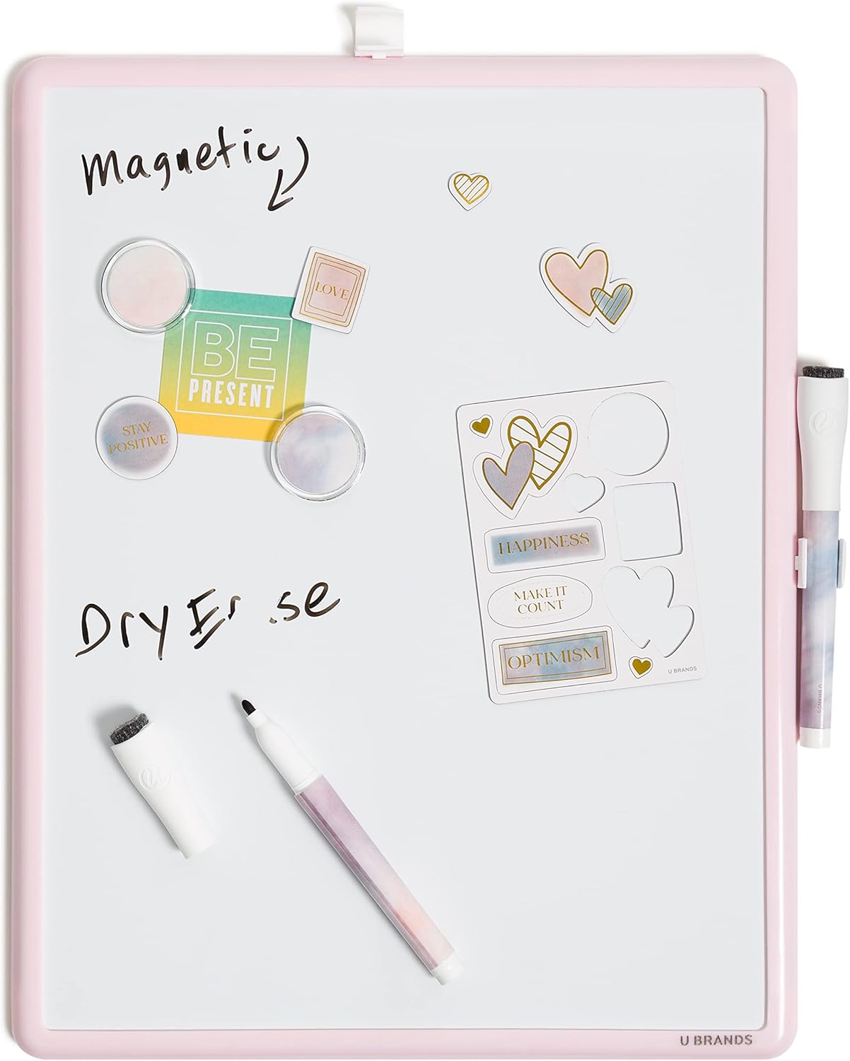 U Brands Contempo Magnetic Dry Erase Board Kit, Set of 15, 11”x14”, Pink Soft Dye Modern Frame, Includes Magnets, Markers